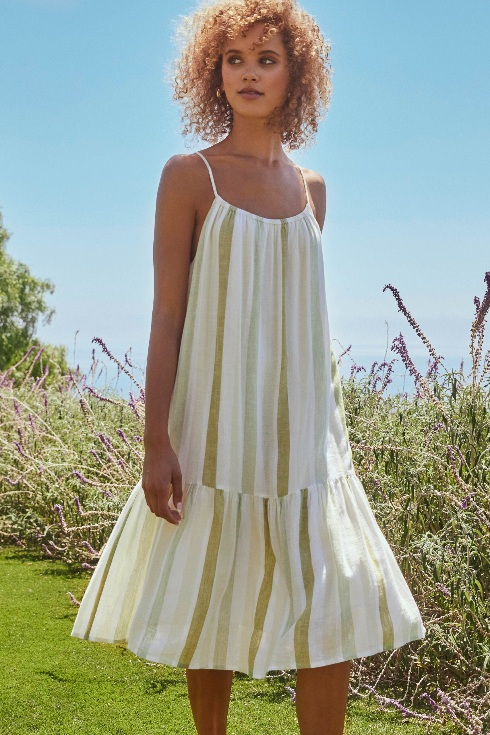 The tiered cami dress is a soft and lightweight piece that’s perfect for all your spring and summer excursions. This vertical striped midi dress features an elastic strap neckline, a removable self-belt at the waist, and flowy tiered details to create a feminine, flirty style that ensures your comfort. The loose fit and thin straps evoke breezy California days on the beach, and you’ll feel the summer calling every time you put it on.