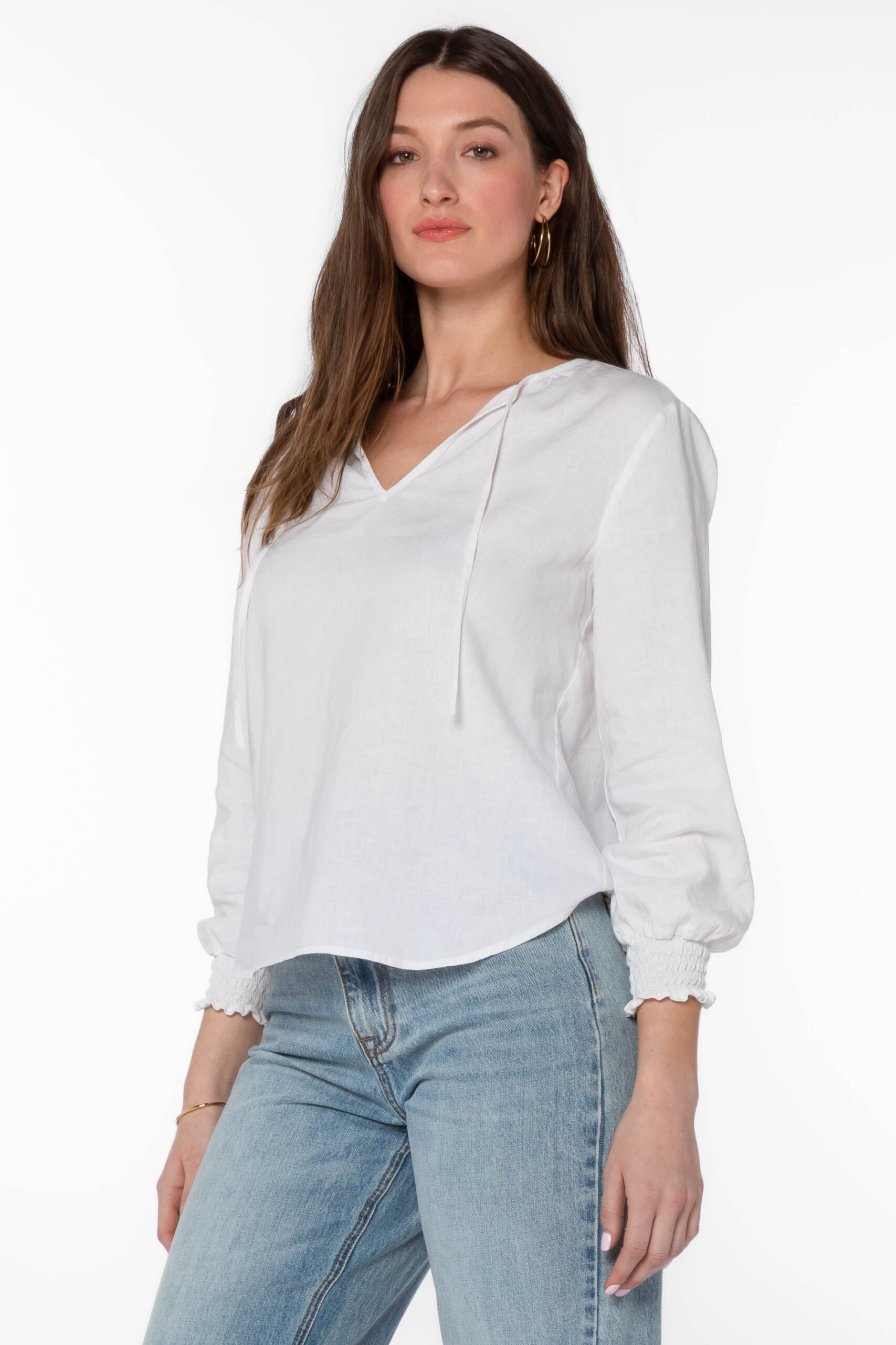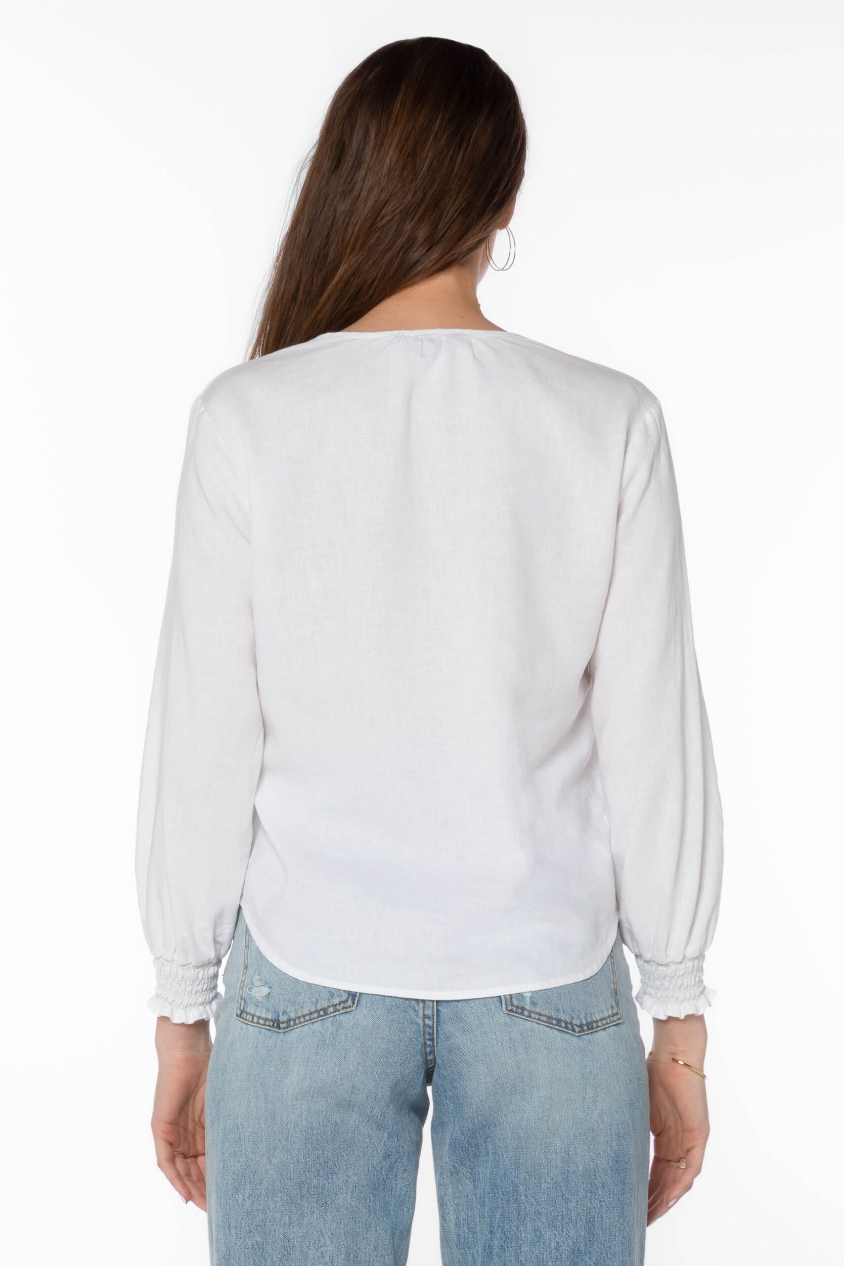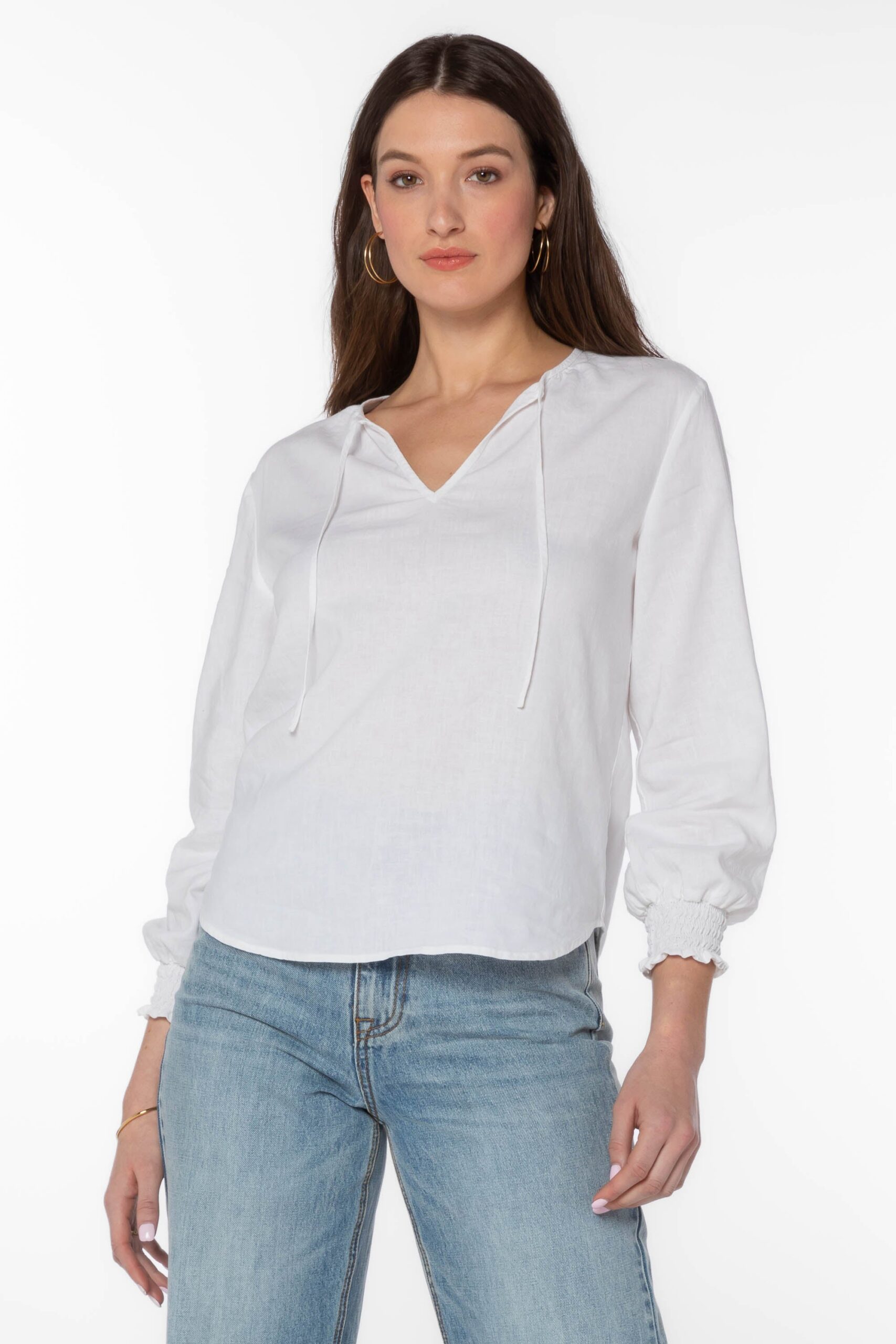This Blouse is designed for comfort and style. The long smocked sleeve paired with the split V-neck gives a stylish touch. The pop-over style makes it easy to layer and style for any occasion.